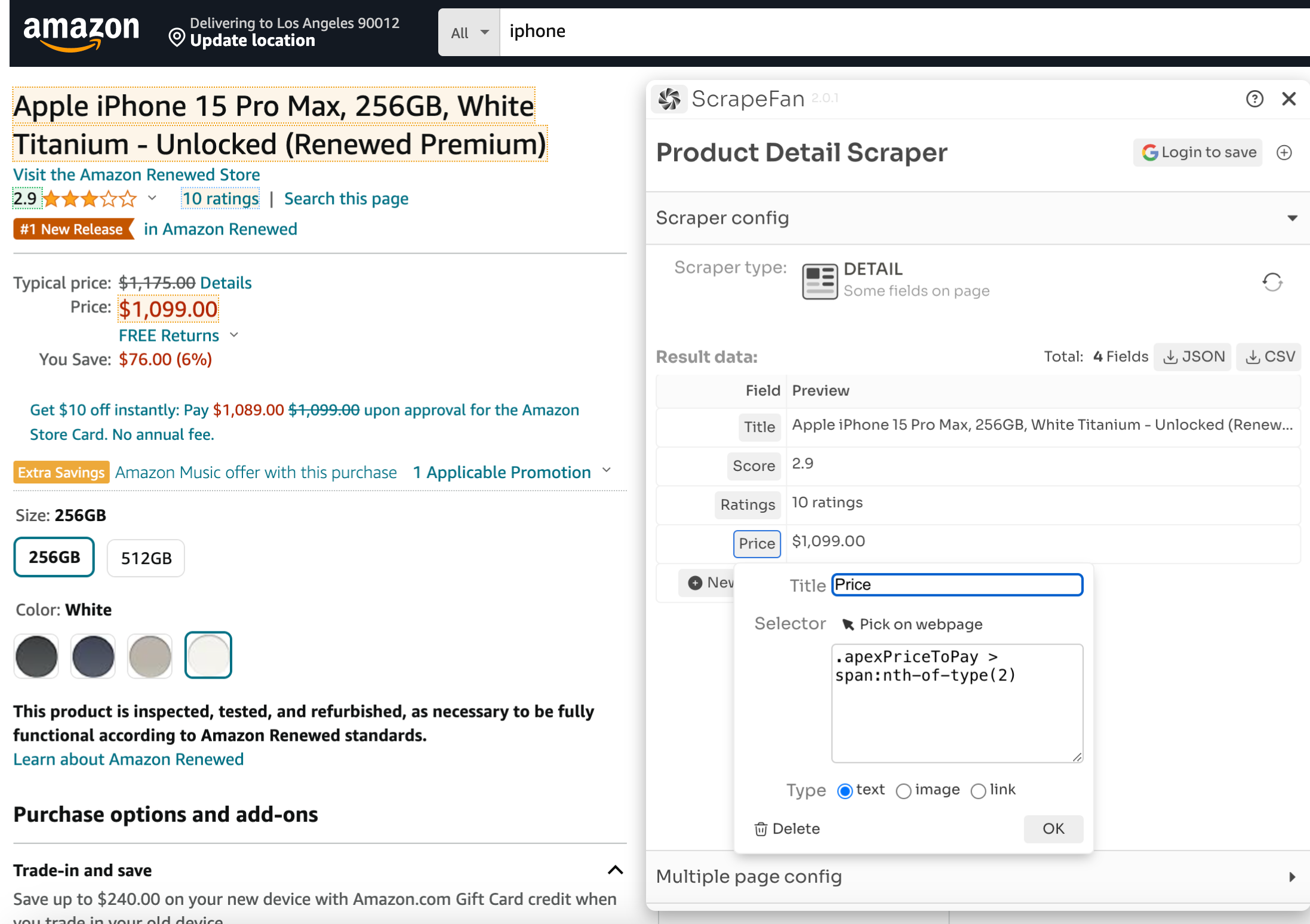- Fields can be set to text / image / link type. This will extract different data into the result: image with their